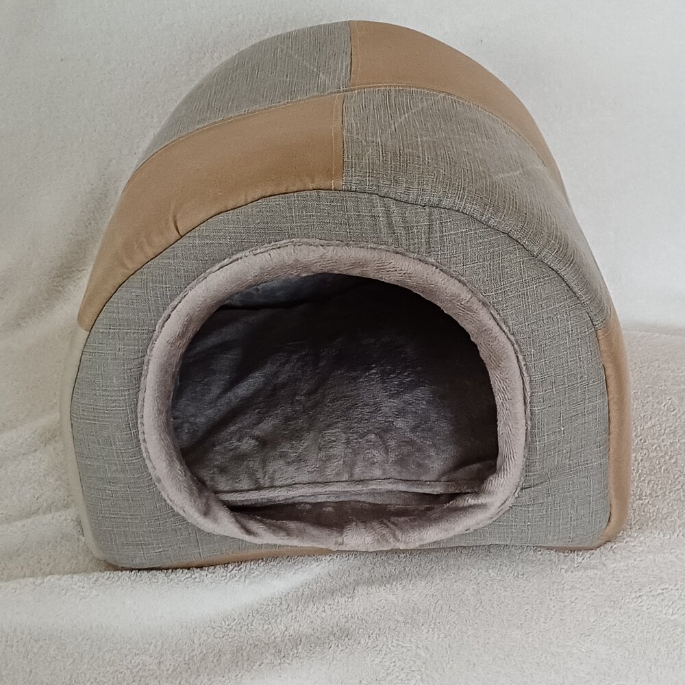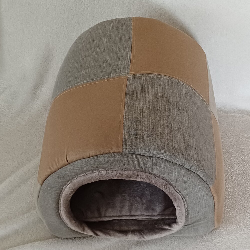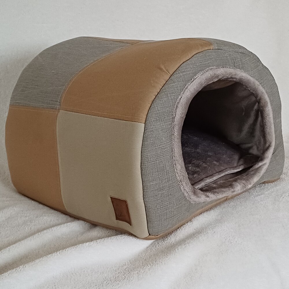 Kívülről farmer, vagy bársony, kimondottan strapabíró anyagból készülnek. Belülről polár, wellsoft, vagy vastagabb ing. Duplafalú. Ez azt jelenti, hogy a külsejébe és a belsejébe is bele van varrva 1 cm.-s kimondottan erősebb, nagyobb keménységű szivacs. Mindegyik házikóhoz tartozik egy külön kis párna, ami pihe puha belől vatterinnal bélelve. Részben újrahasznosított anyagból készülnek a farmer, a bársony, az ing. De a pollár, a wellsoft mind új anyag. Az újrahasznosított anyagok hőkezelve vannak. Mosva, vasalva.